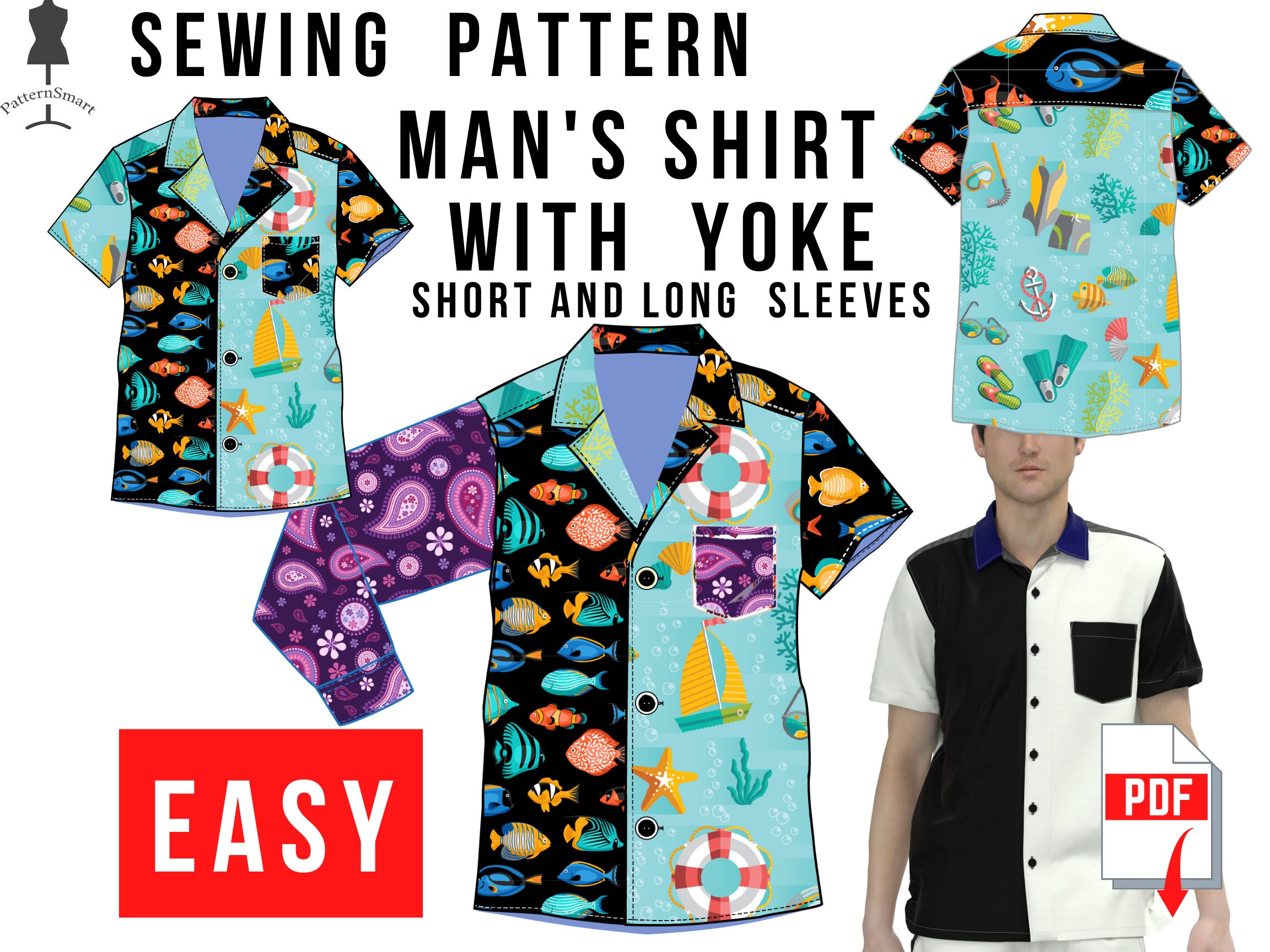 Buy 1 Get 1 Free Pattern Man Yoke Camp Shirt Long Or Short Etsy Australia