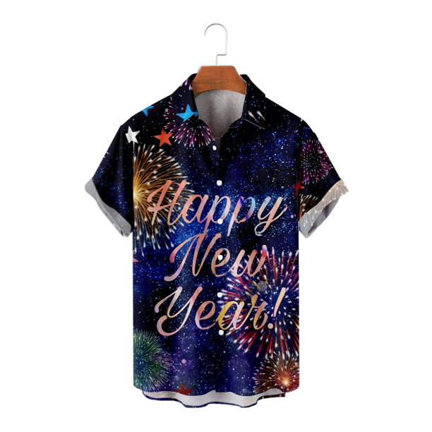 Men Boys Shirt New Year Print Casual Short Sleeve Button Down Hawaiian Shirt Beach Shirts Gift For Men Walmart Com